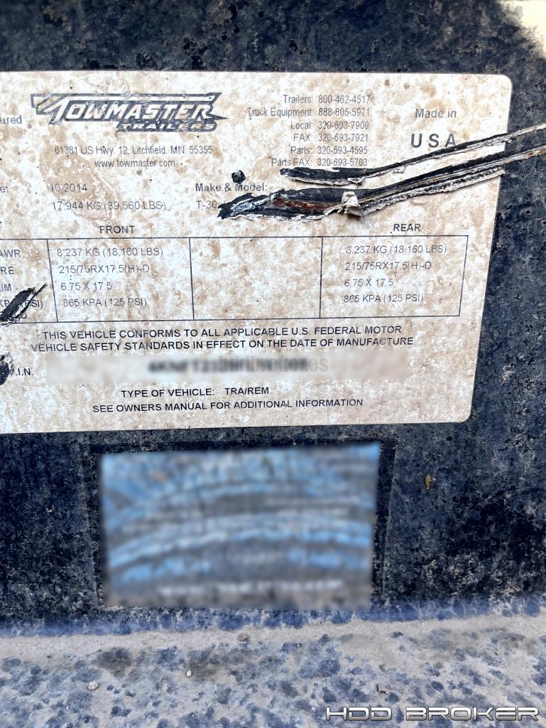 -2014 Towmaster T-30 Equipment Trailer.